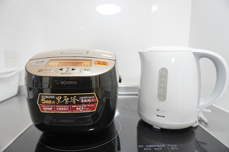 キッチンには炊飯器や調理器具、ホットプレートも!